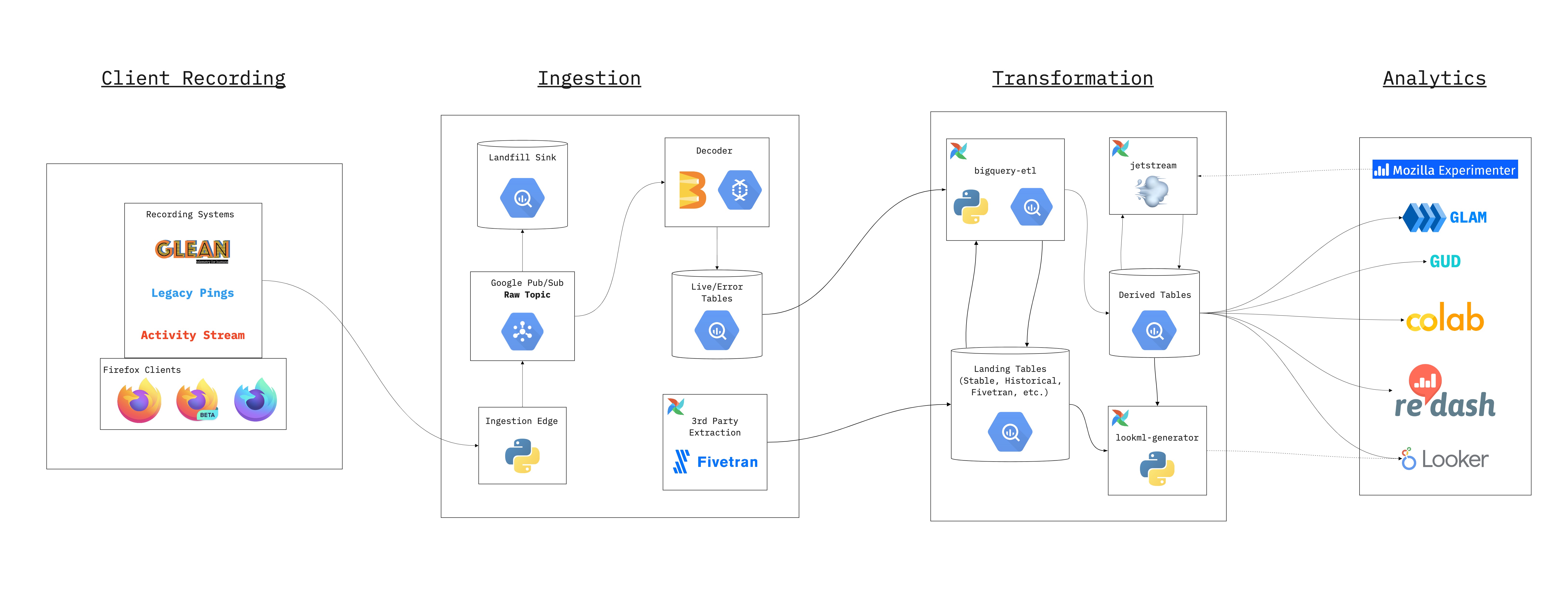 This section provides a quick introduction to Mozilla's Telemetry data: it should help you understand how this data is collected and how to begin analyzing it.