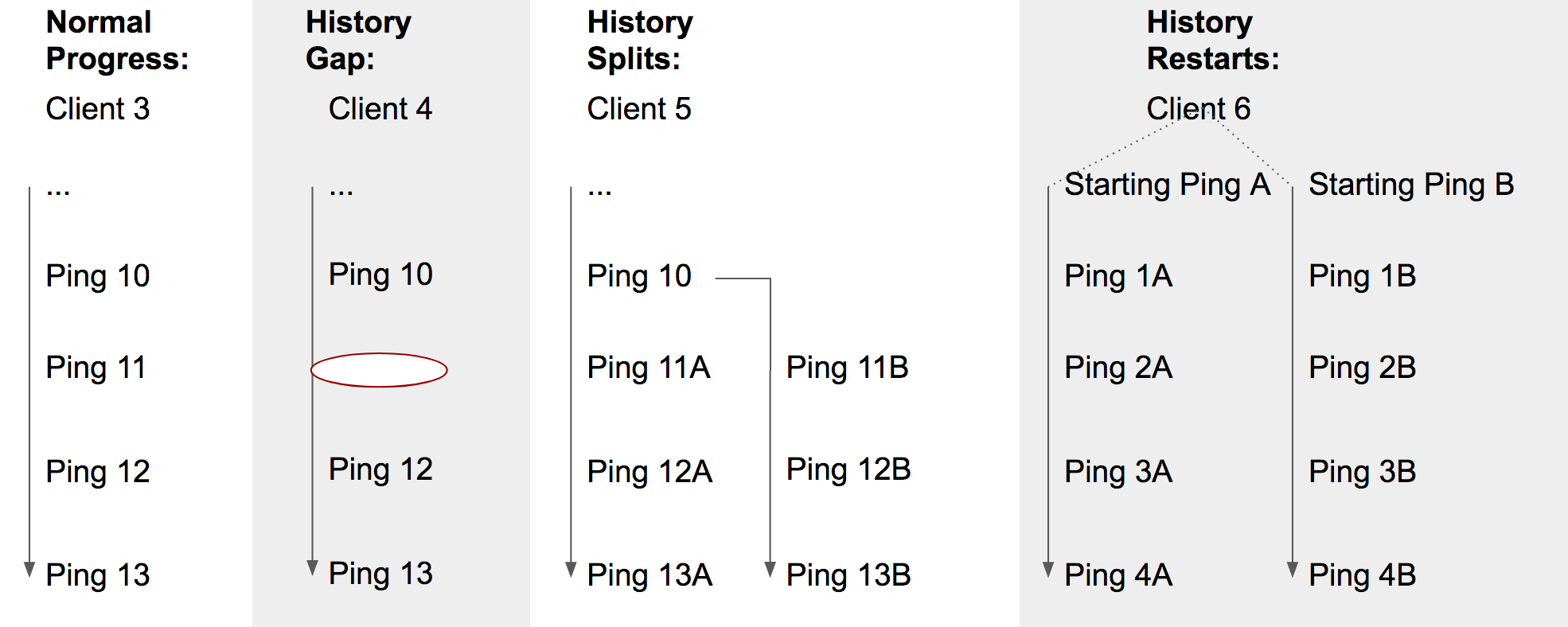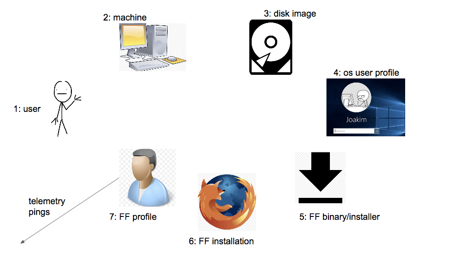 Most of our products, including Firefox, are instrumented to send small JSON packets called "pings" when telemetry is enabled. Pings include some combination of environment data (e.g., information about operating system and hardware), measurements (e.g., for Firefox, information about the maximum number of open tabs and time spent running in JavaScript garbage collections), and events (indications that something has happened).